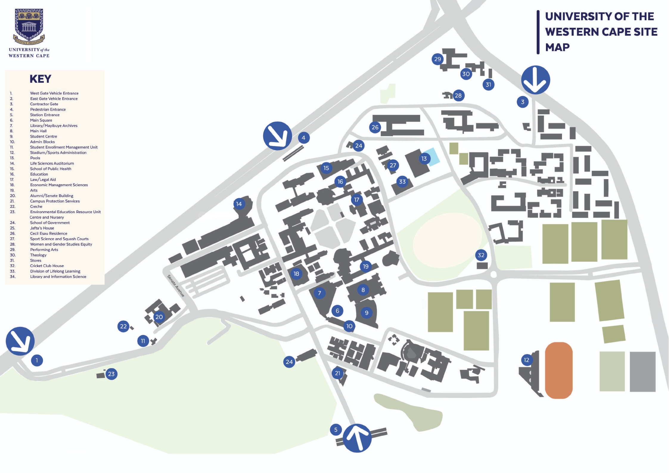 The SAIP2026 conference (including the plenary and parallel talks, business and division meetings, special events, and the welcome reception/opening ceremony) will be held at various locations on campus at the University of the Western Cape.